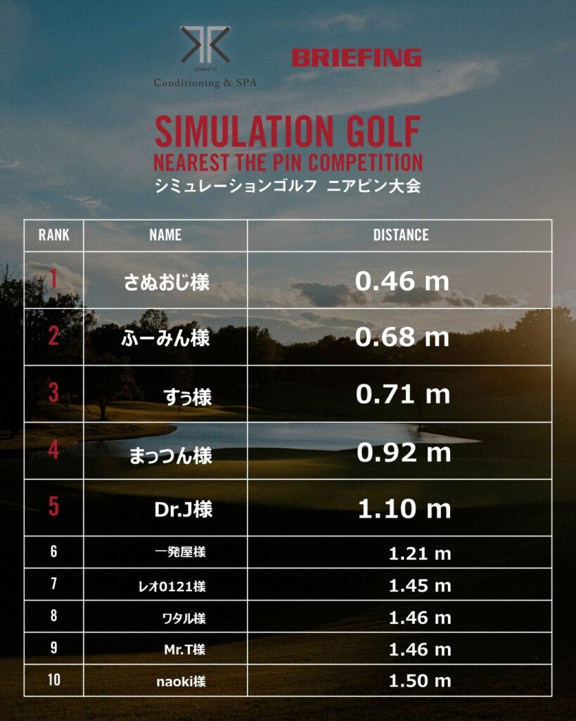 ニアピン大会ランキング、最終結果です。多くの方にご参加いただき、大変盛り上がった大会となりました。改めて御礼申し上げます。